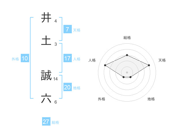 井土 誠六さんの総格は27画の3点!