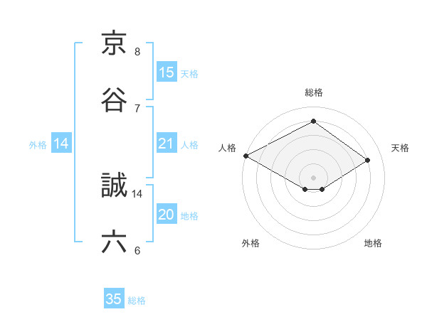 京谷 誠六さんを姓名の画数から五運を鑑定