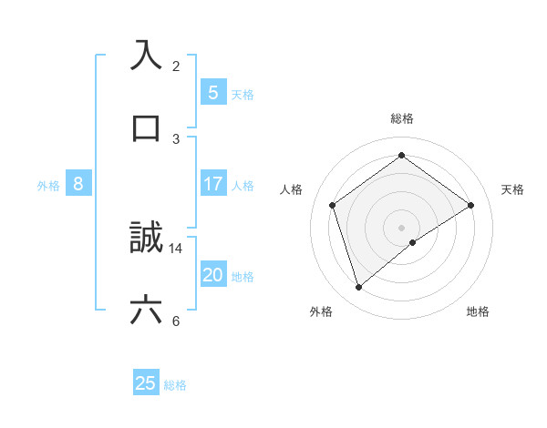 入口 誠六さんの総格は25画の4点!