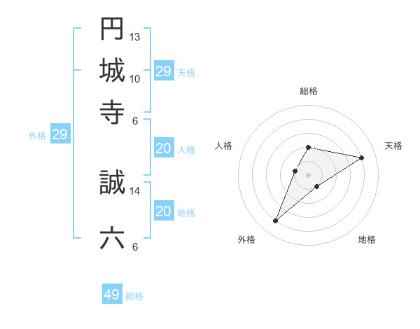 円城寺 誠六さんの総格は49画の2点!