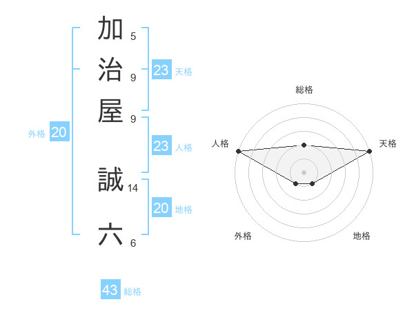 加治屋 誠六さんの天格は23画の5点