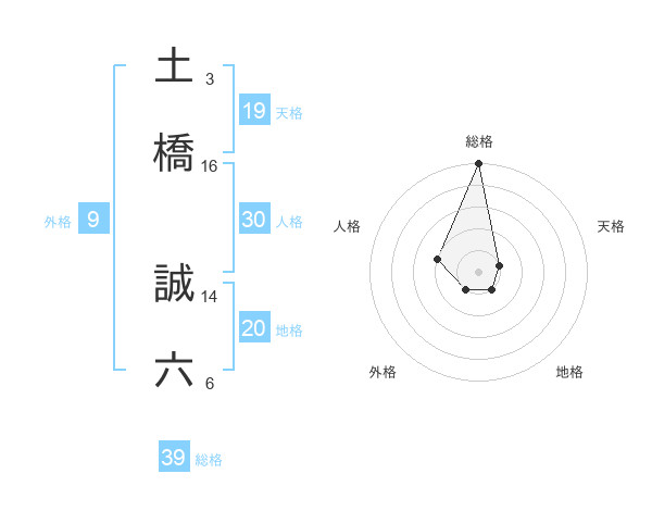 土橋 誠六さんを姓名の画数から五運を鑑定