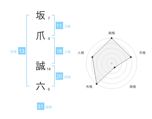 坂爪 誠六さんを姓名の画数から五運を鑑定