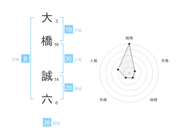 大橋 誠六さんを姓名の画数から五運を鑑定