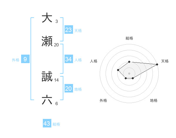 大瀬 誠六さんの天格は23画の5点!