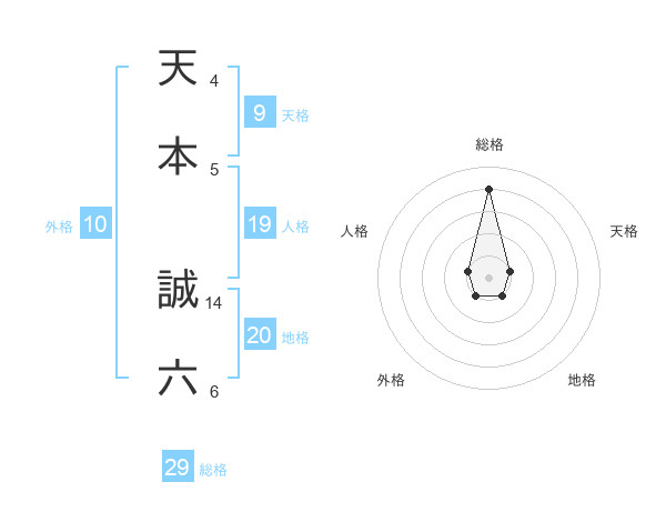 天本 誠六さんの総格は29画の4点!