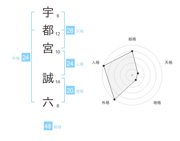 宇都宮 誠六さんを姓名の画数から五運を鑑定