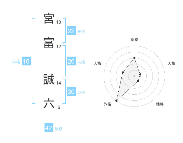 宮富 誠六さんの総格は42画の3点!