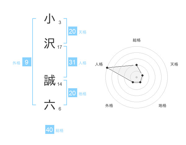 小沢 誠六さんの人格は31画の5点!