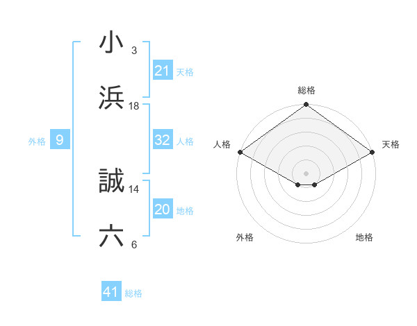 小浜 誠六さんの総格は41画の5点!