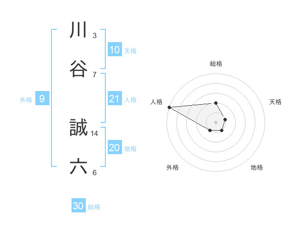 川谷 誠六さんを姓名の画数から五運を鑑定