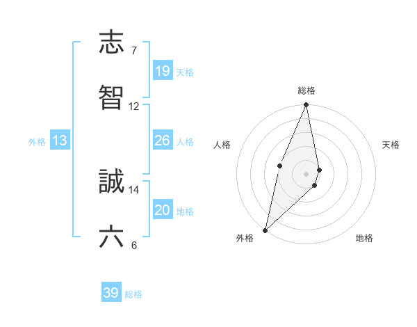 志智 誠六さんの総格は39画の5点!