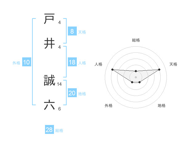 戸井 誠六さんを姓名の画数から五運を鑑定