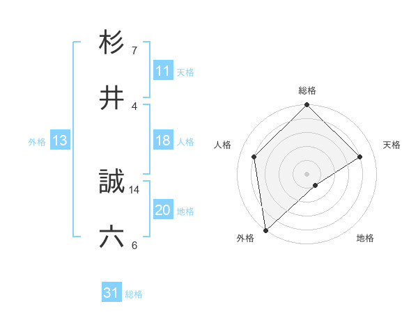 杉井 誠六さんの総格は31画の5点!