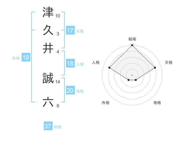 津久井 誠六さんの総格は37画の5点!