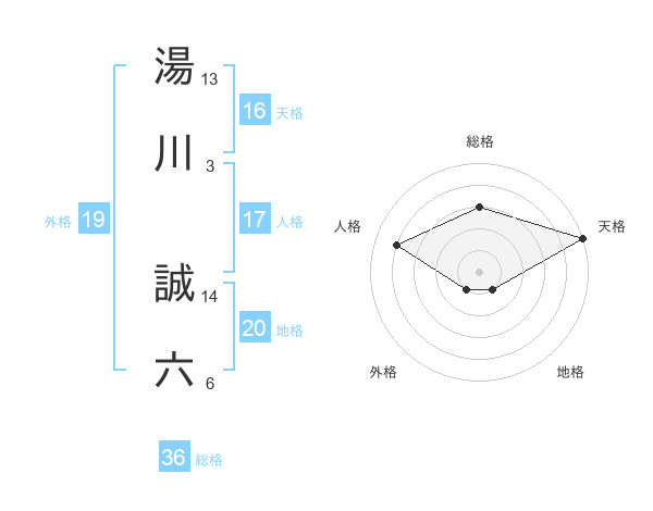 湯川 誠六さんを姓名の画数から五運を鑑定