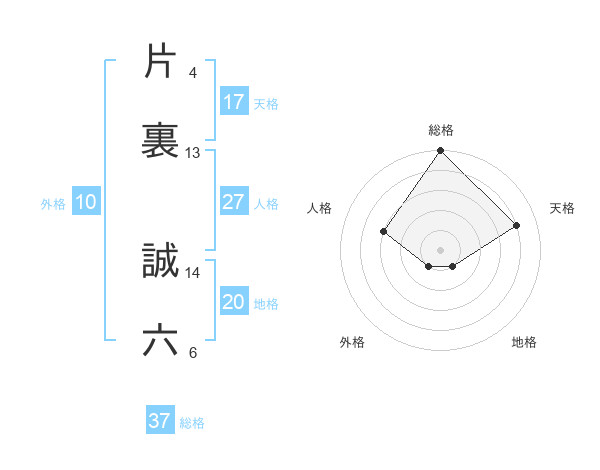 片裏 誠六さんの総格は37画の5点!