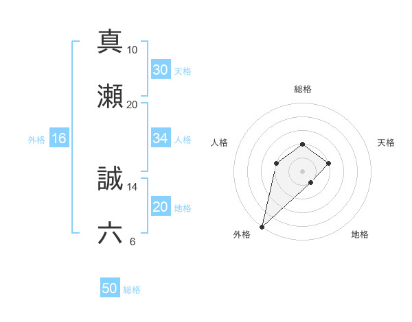 真瀬 誠六さんの外格は16画の5点!
