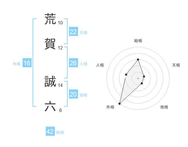 荒賀 誠六さんの外格は16画の5点!