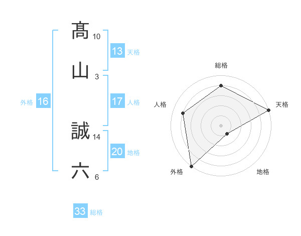 髙山 誠六さんを姓名の画数から五運を鑑定