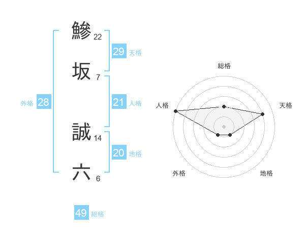鰺坂 誠六さんの天格は29画の4点!