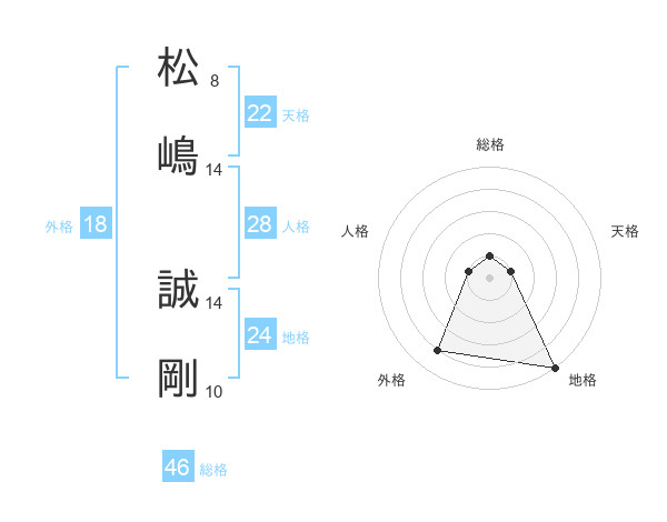 松嶋 誠剛さんの総格は46画の1点!