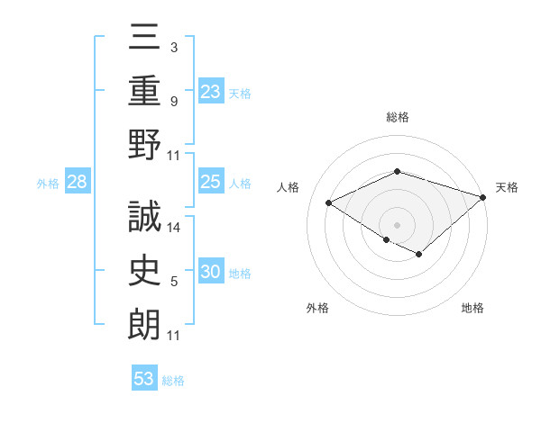 三重野 誠史朗さんを姓名の画数から五運を鑑定