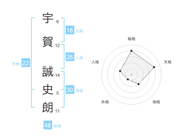 宇賀 誠史朗さんの地格は30画の2点!