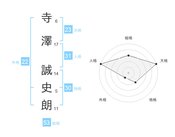 寺澤 誠史朗さんを姓名の画数から五運を鑑定
