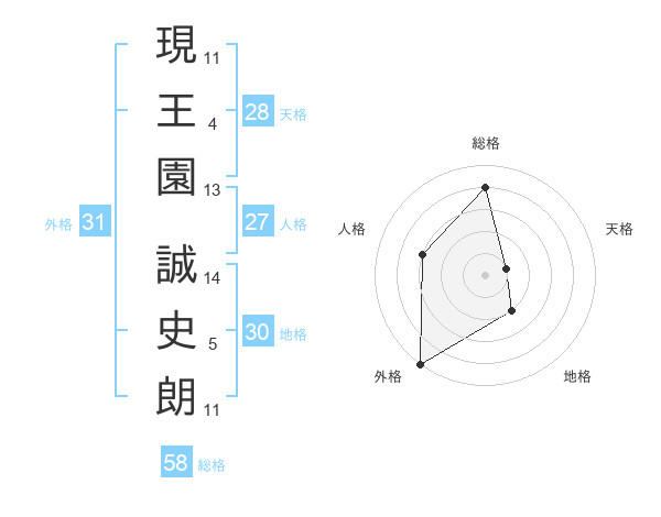 現王園 誠史朗さんを姓名の画数から五運を鑑定