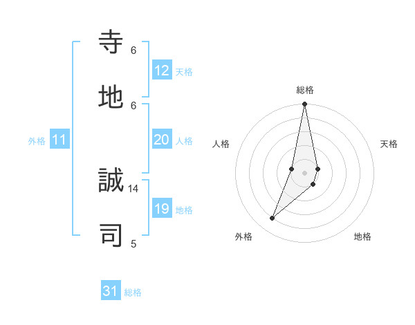 寺地 誠司さんの総格は31画の5点!