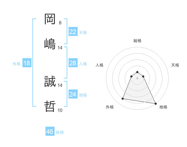 岡嶋 誠哲さんの総格は46画の1点!