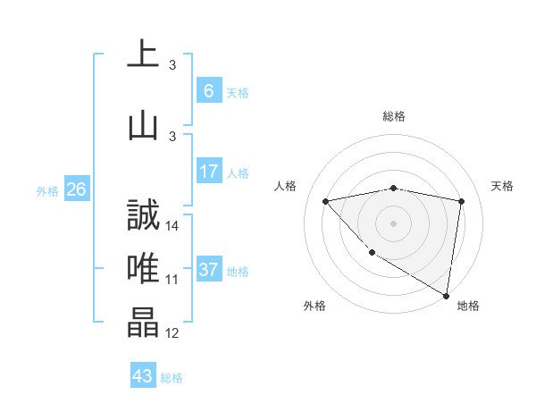 上山 誠唯晶さんを姓名の画数から五運を鑑定