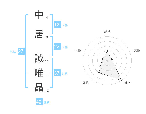 中居 誠唯晶さんの地格は37画の5点!
