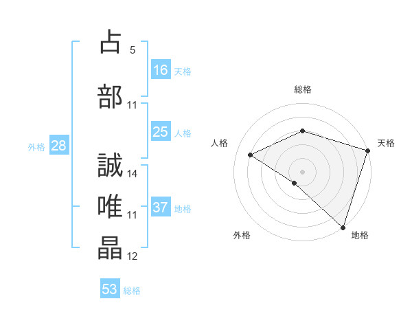 占部 誠唯晶さんを姓名の画数から五運を鑑定