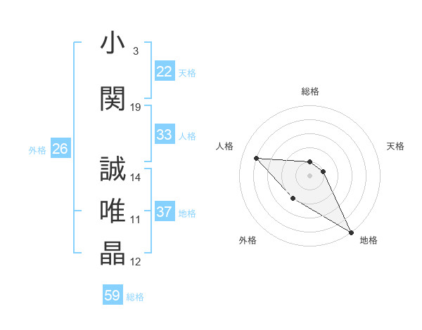 小関 誠唯晶さんの天格は22画の1点!