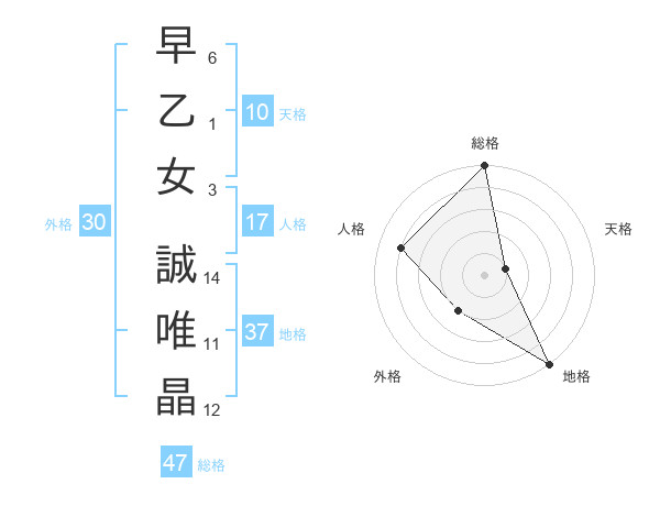 早乙女 誠唯晶さんを姓名の画数から五運を鑑定