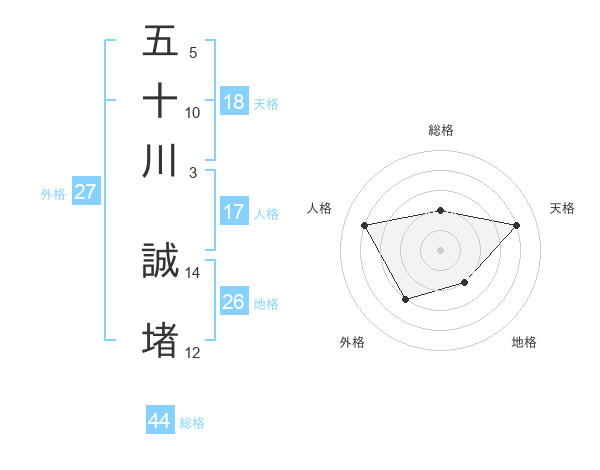 五十川 誠堵さんを姓名の画数から五運を鑑定