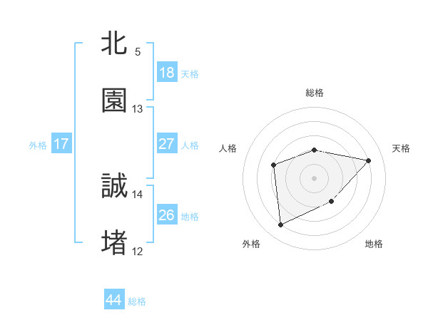 北園 誠堵さんの総格は44画の2点!