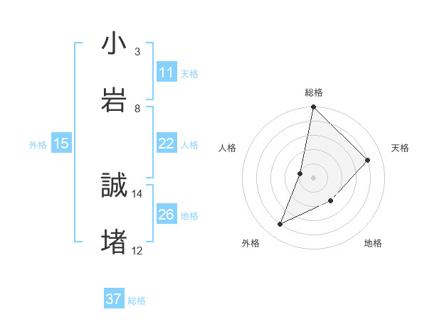 小岩 誠堵さんを姓名の画数から五運を鑑定