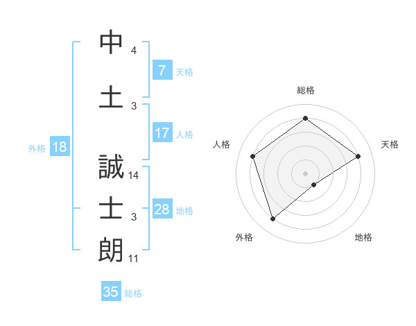 中土 誠士朗さんの総格は35画の4点!