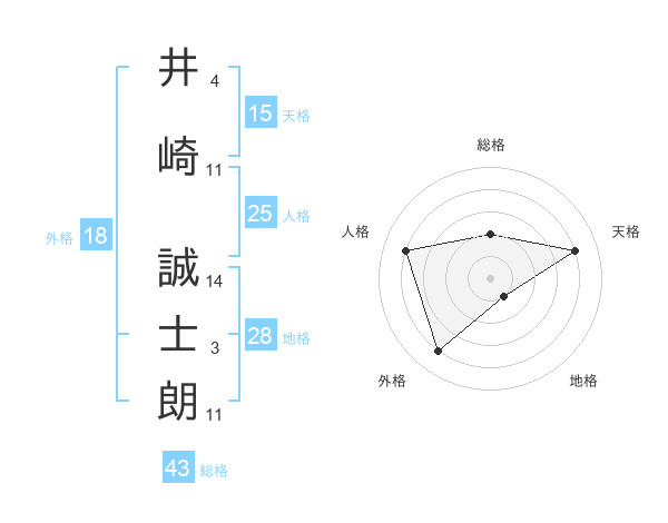 井崎 誠士朗さんの総格は43画の2点!