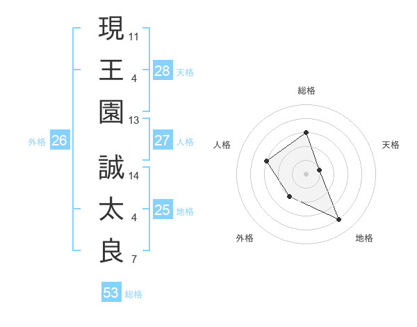 現王園 誠太良さんを姓名の画数から五運を鑑定