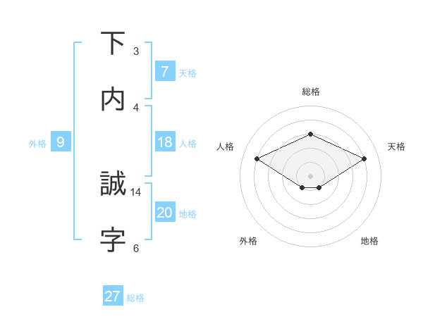 下内 誠字さんの天格は7画の4点!