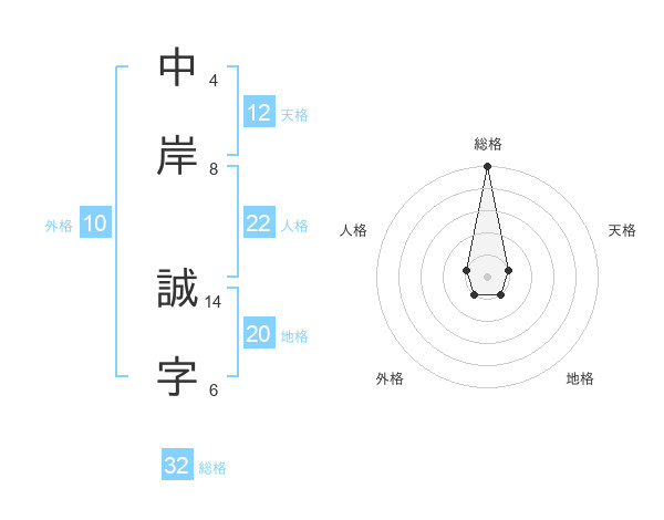 中岸 誠字さんを姓名の画数から五運を鑑定
