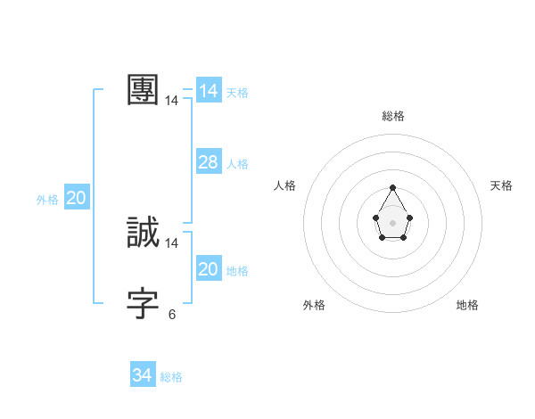 團 誠字さんの総格は34画の2点!