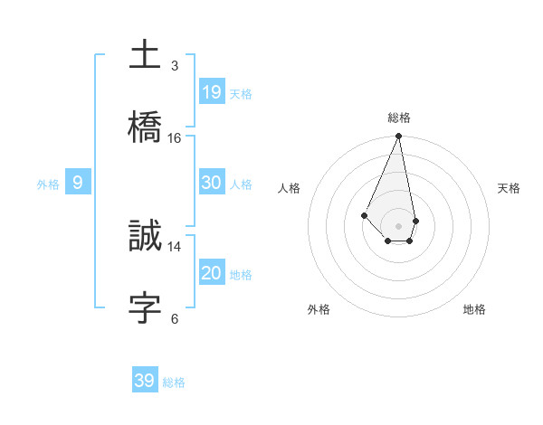 土橋 誠字さんを姓名の画数から五運を鑑定