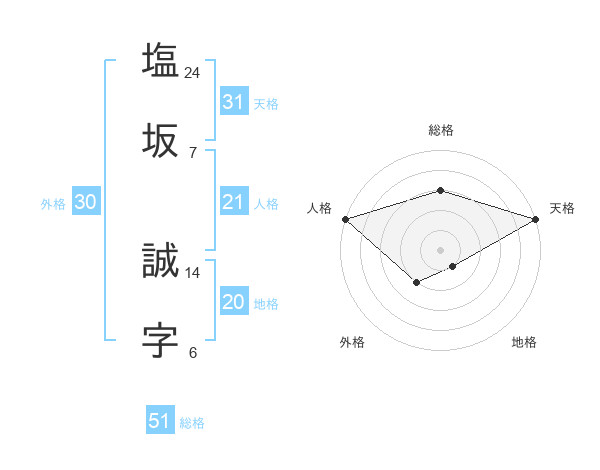 塩坂 誠字さんの総格は51画の3点!