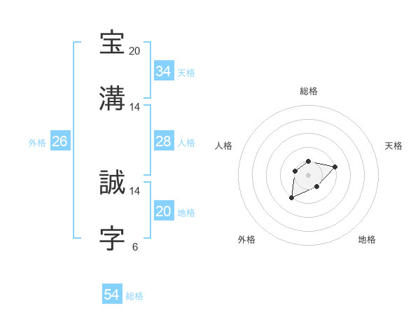 宝溝 誠字さんの総格は54画の1点!