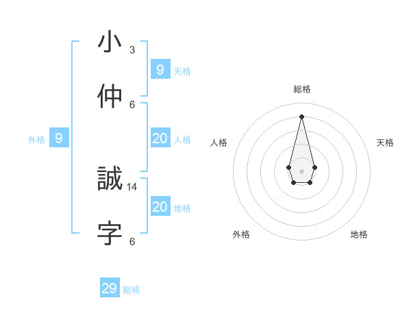 小仲 誠字さんを姓名の画数から五運を鑑定